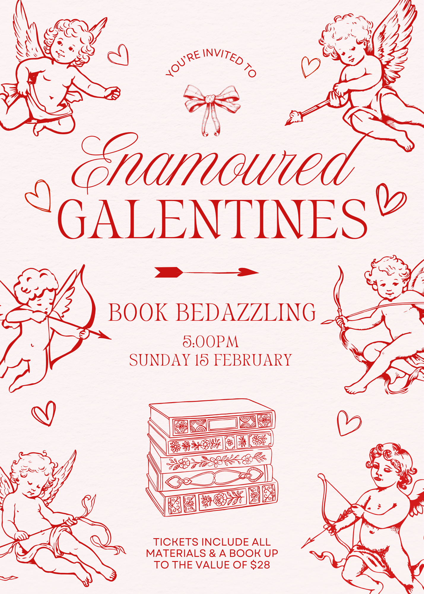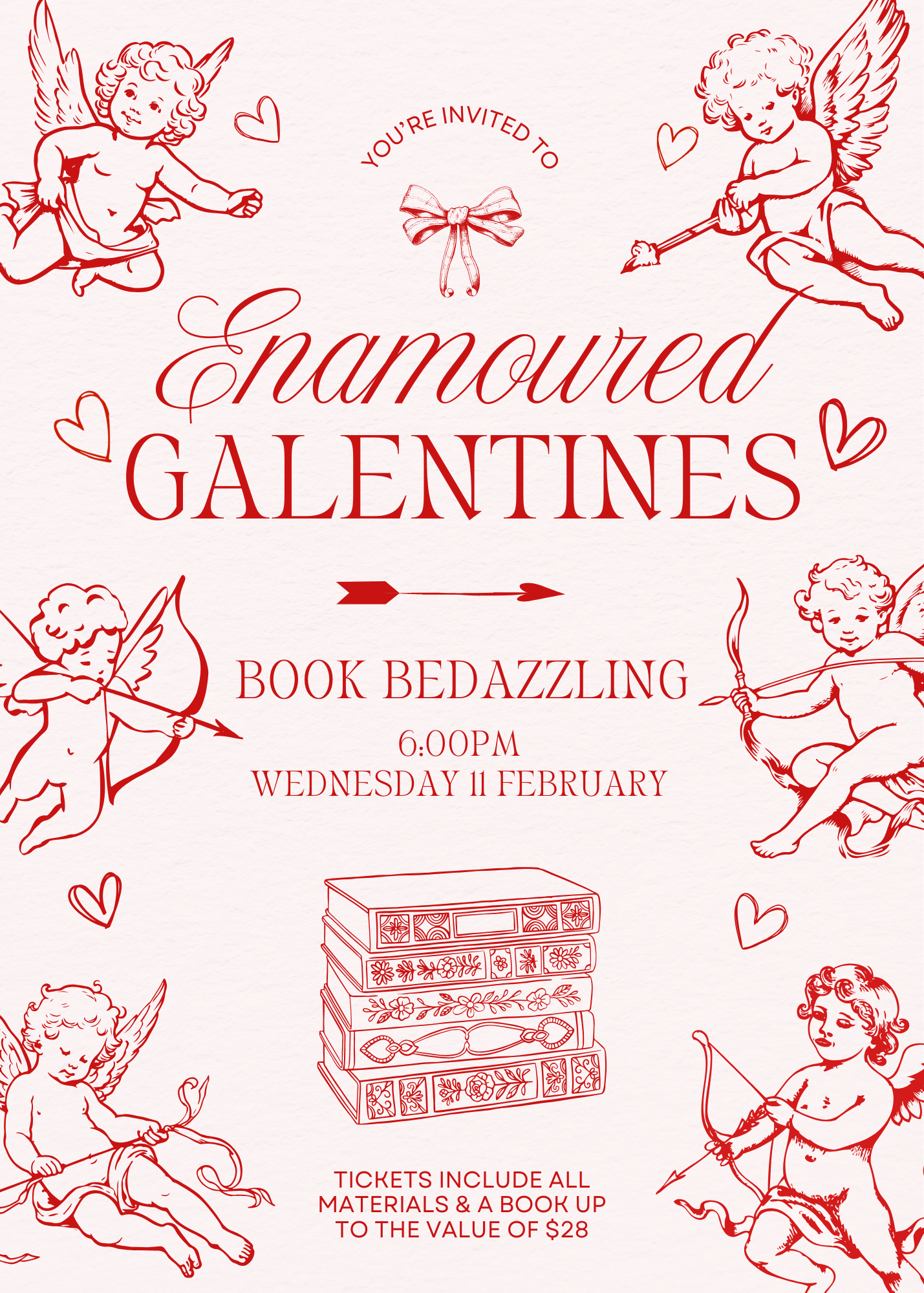 Sparkle up your valentines with our Enamoured Galentines Book Bedazzling Evening.